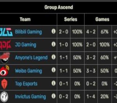 JDG登峰组2胜1负排名升至第二,仅次于三战全胜的BLG